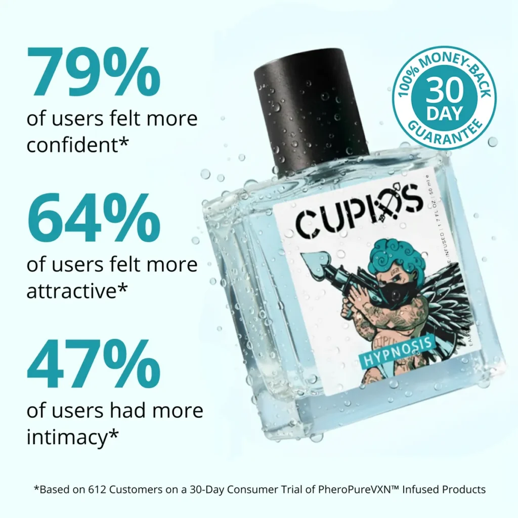 Low pheromone levels can limit your natural magnetism. Cupidhypnosis’ exclusive PheroPureVXN™ formula, developed by experts with over 20 years of research, combines a potent, science-backed blend designed to enhance your body’s natural pheromone signal. With just a few sprays, you’ll feel more confident, more attractive, and effortlessly captivating.